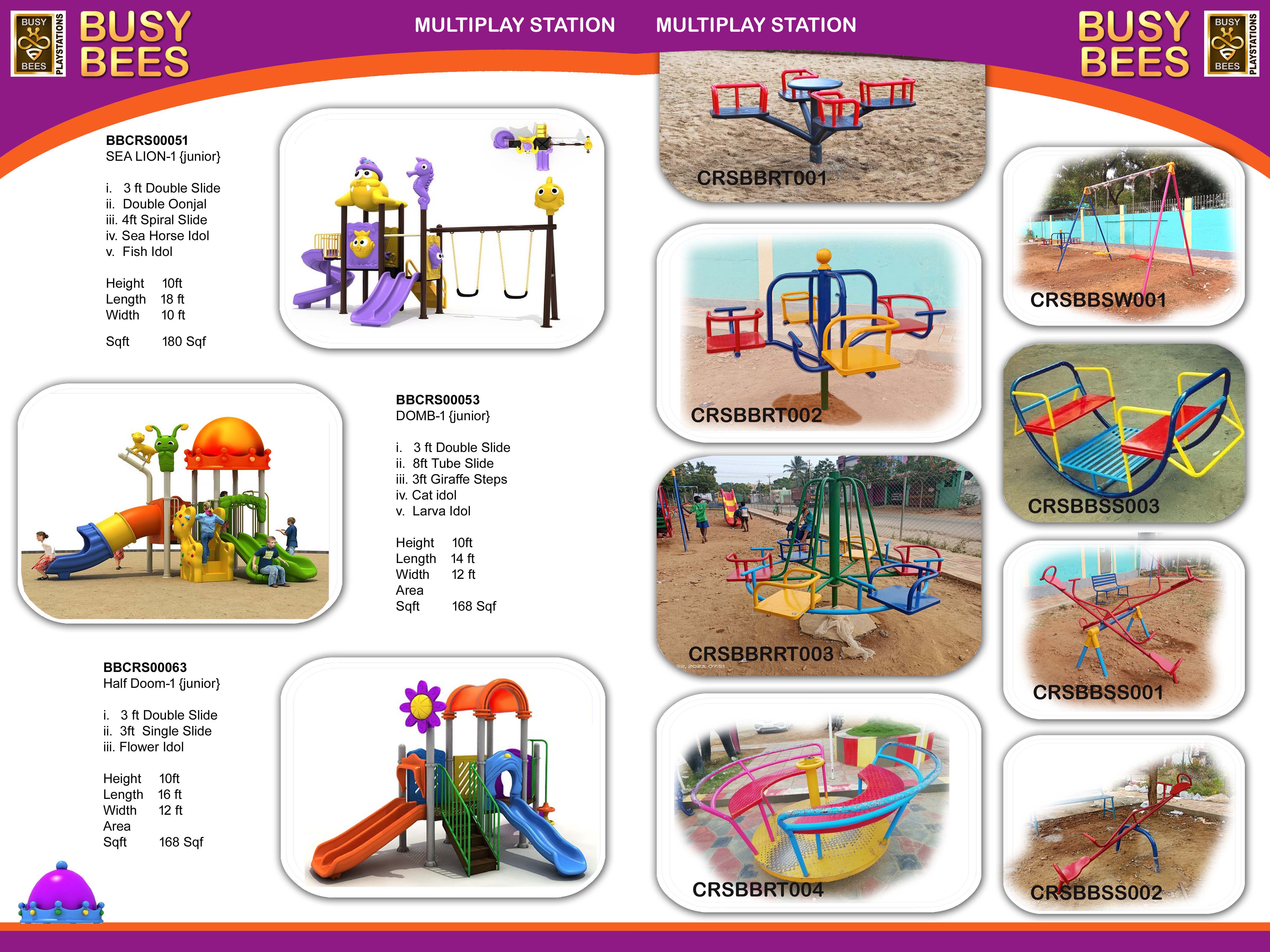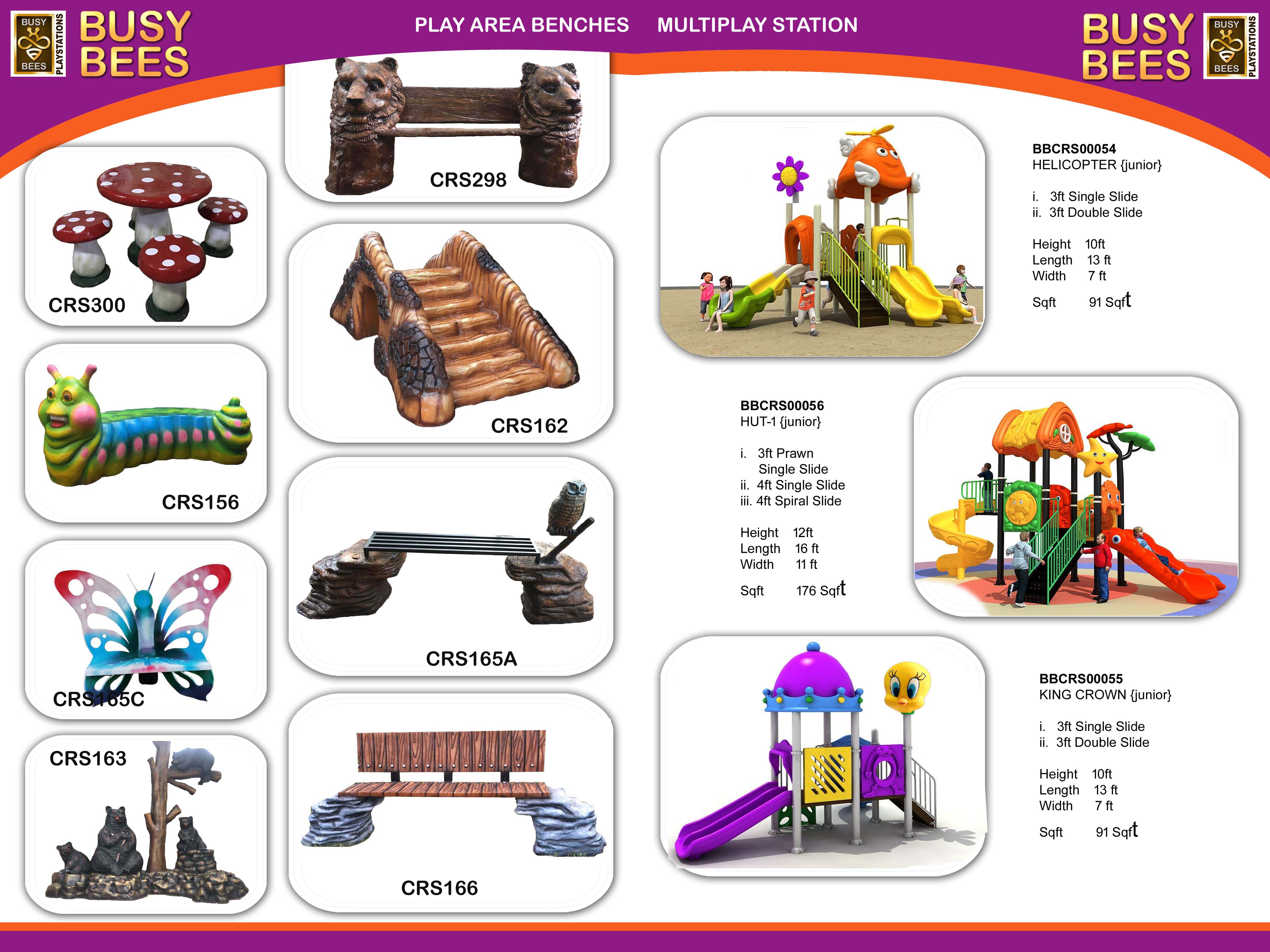 "Take your play park to the next level with our top-notch selection of playground components. From swings and slides to climbers and spring riders, our products are designed for maximum safety and fun. With durable materials and a variety of themes, you can create a custom park that fits your needs and style."