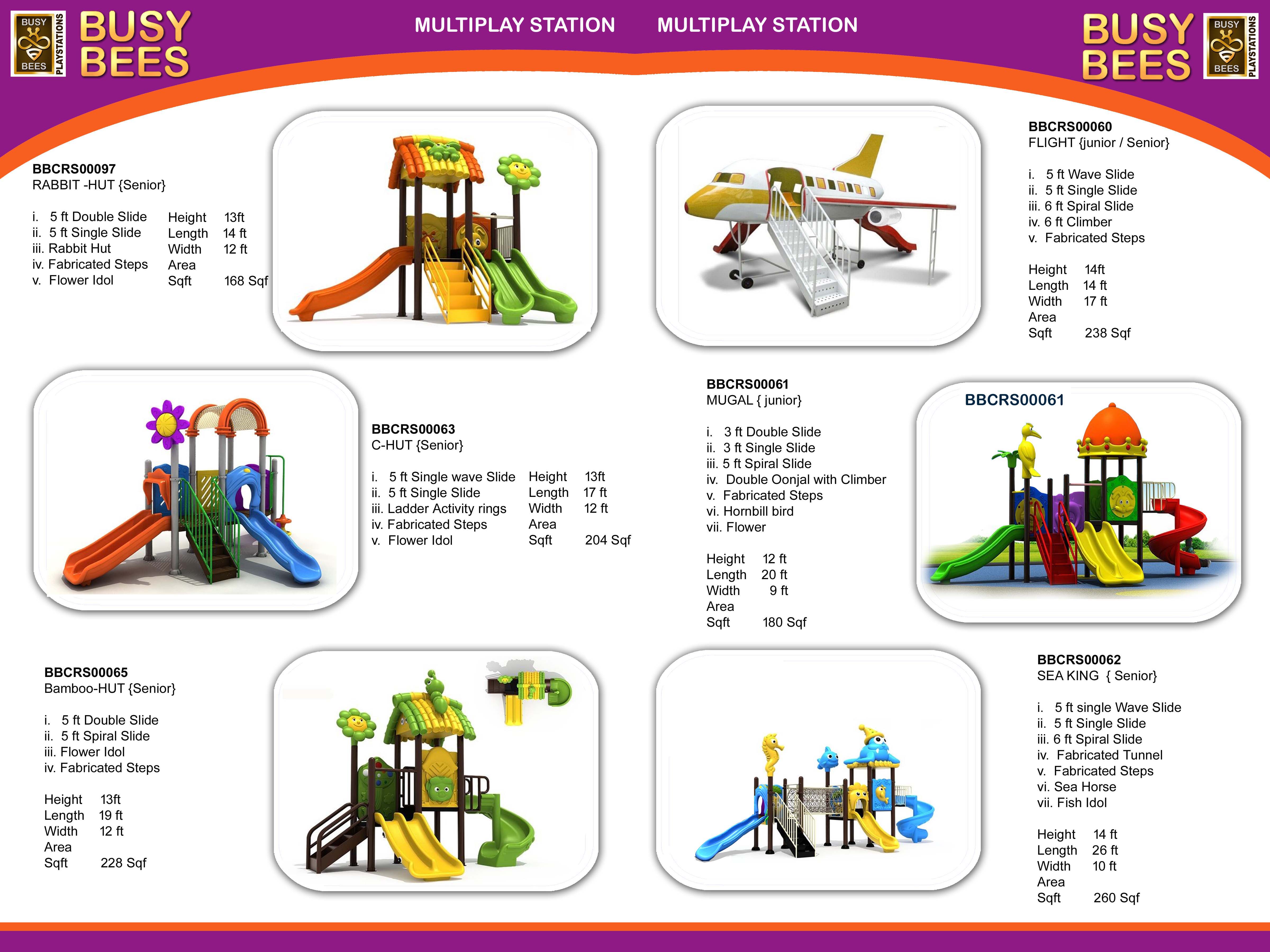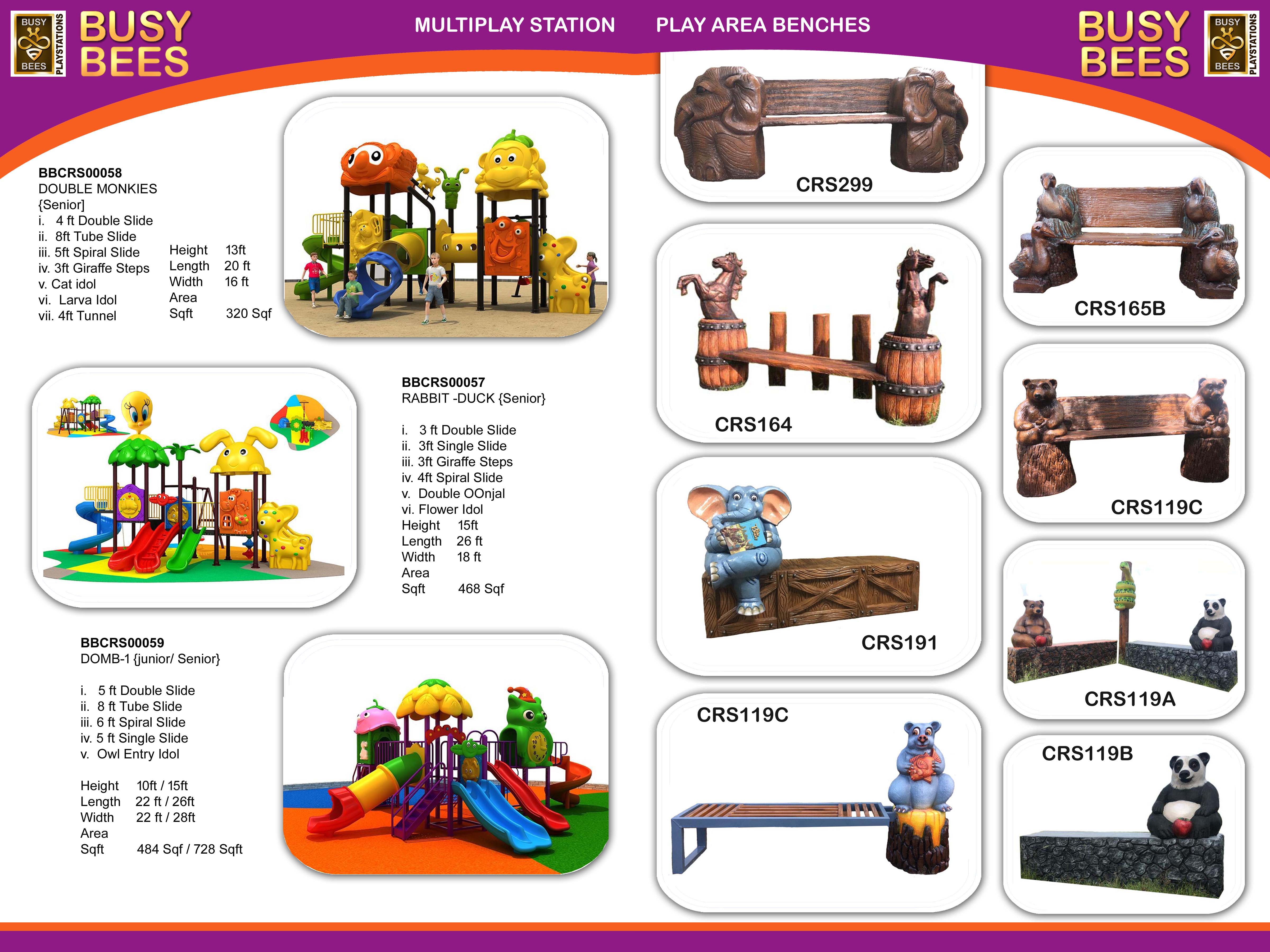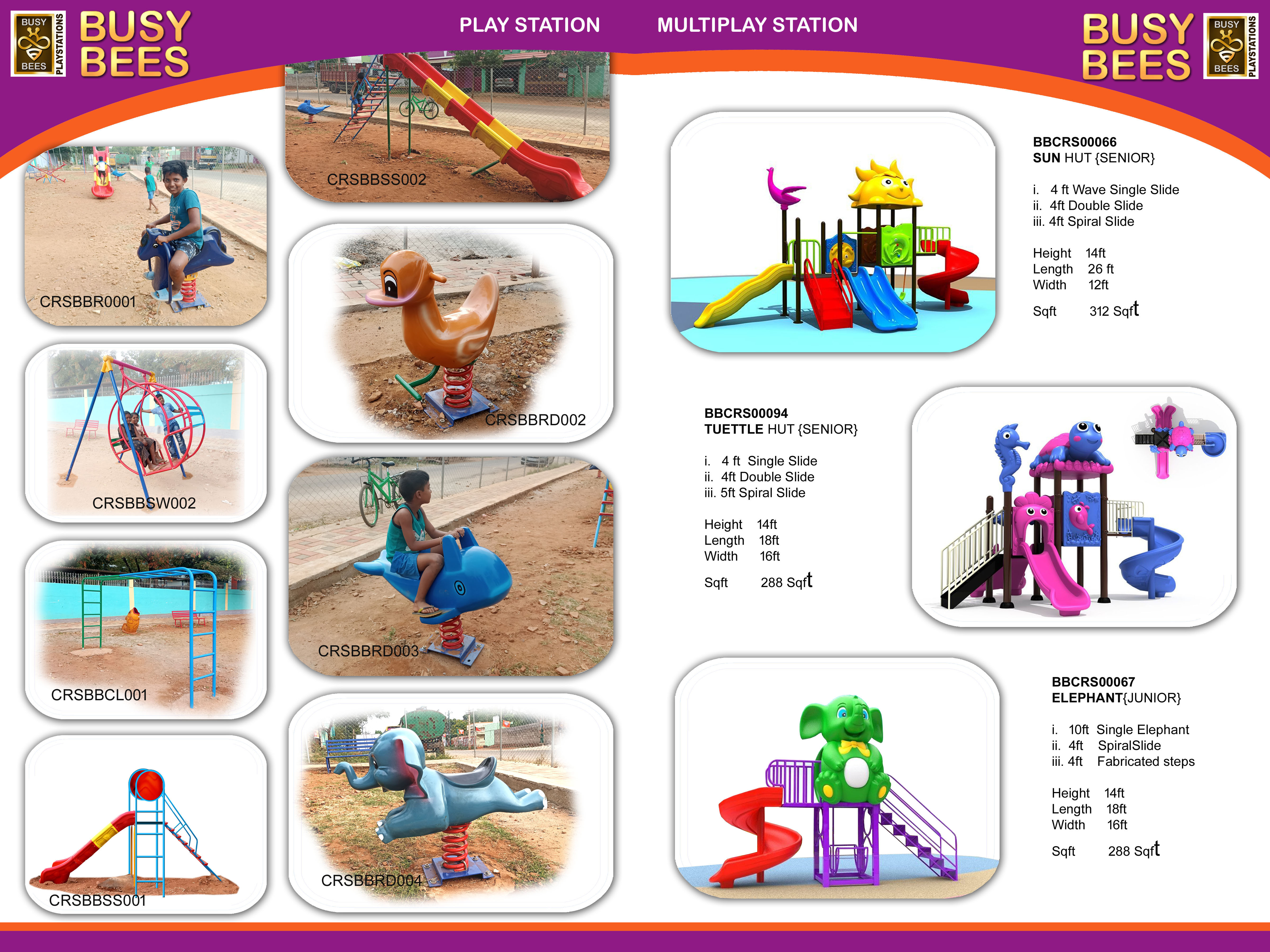 "Take your play park to the next level with our top-notch selection of playground components. From swings and slides to climbers and spring riders, our products are designed for maximum safety and fun. With durable materials and a variety of themes, you can create a custom park that fits your needs and style."